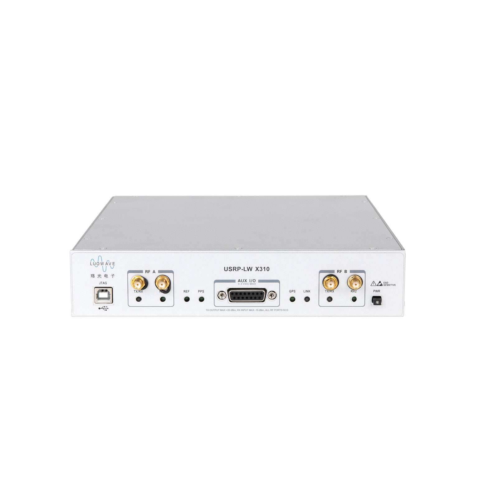 The USRP-LW X310 offers a variety of high speed interfaces to choose from. On the panel of the box, the Gigabit Ethernet port is the easiest way to connect. For applications with extended bandwidth and low latency, such as PHY/MAC research, it provides an efficient bus interface PCIe x4 for this deterministic operation. When the application uses network records or multi-node processing, 10G ports are the best choice. The USRP-LW X310 includes many additional features that will help with some other wireless applications. For example, in FPGA design, 1GB DDR3 on the motherboard can be used as data buffering and data storage. The optional internal GPSDO provides a highly accurate frequency reference when synchronized to a GPS system with a synchronization delay of less than 50ns. Allows the user to control external components such as amplifiers and switches through the GPIO interface, supports inputs such as event triggers, and observes debug signals. The USRP-LW X310 also includes an internal JTAG adapter that allows developers to easily load and debug new FPGA images.