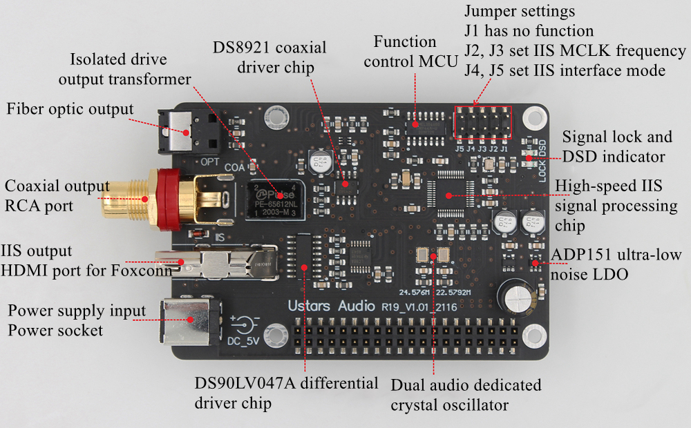 Ustars Audio R19 Digital Audio Board 32Bit PCM384KHz DSD512 Coaxial DOP128 For Raspberry Pi