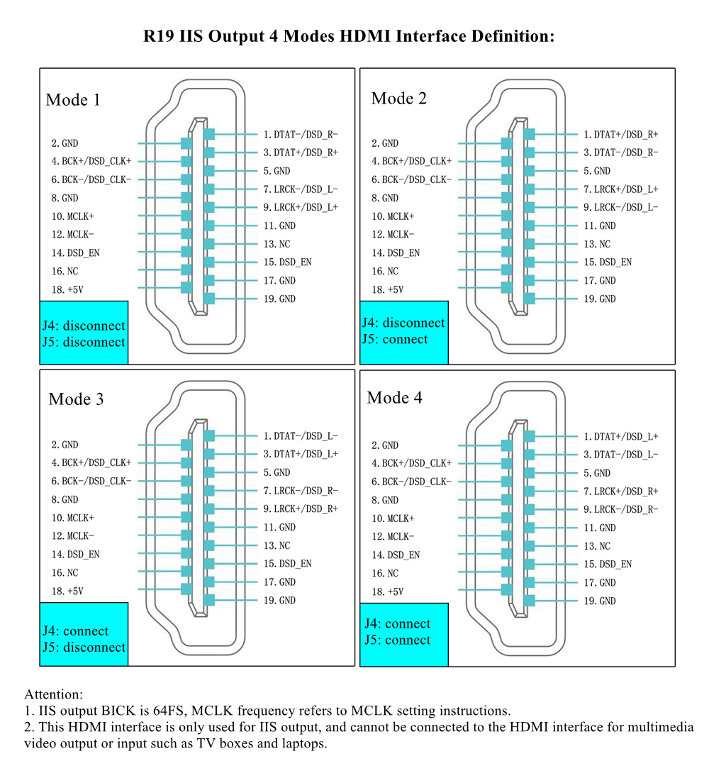 7. Use HDMI interface to output IIS signal, with MCLK output, you can set multiple output modes and MCLK clock frequency, which is convenient to connect to most high-end DAC decoders on the market