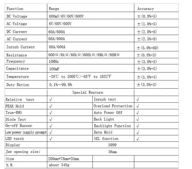 UYIGAO UA2018D AC DC Clamp Meter Auto Range Handheld Clamp Multimeter With TRMS Function