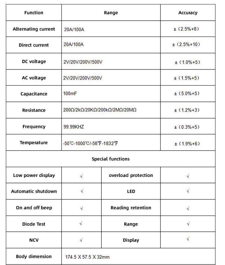 - AC/DC clamp multimeter. Multi-function test, small and exquisite