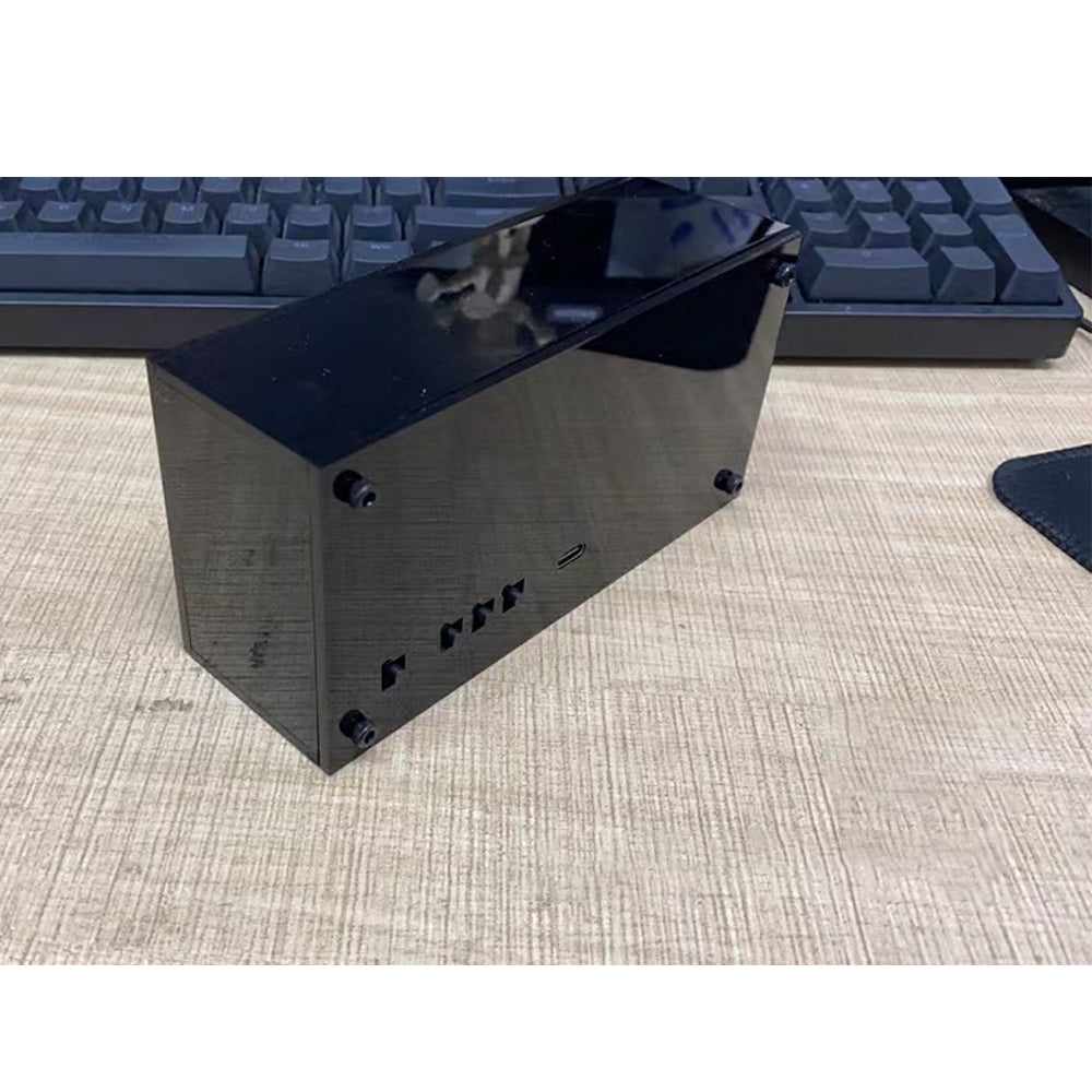 - Acrylic housing in black translucent and black opaque; secured with black hex screws and nickel-plated copper pillars