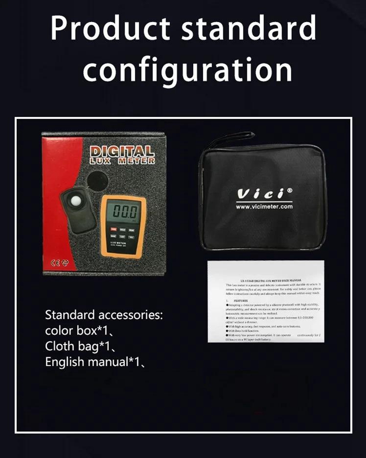 Vici LX-1336B 10-200000cd/m² LCD Screen Light Tester Intelligent Luminance Meter High Precision Digital Lux Meter
