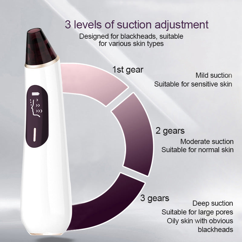 - Three-gear suction force, suitable for various skins. The first gear is mild suction, suitable for sensitive skin. The second level is moderate suction, suitable for normal skin. The third level is deep suction, which is suitable for oily skin with large pores and obvious blackheads.