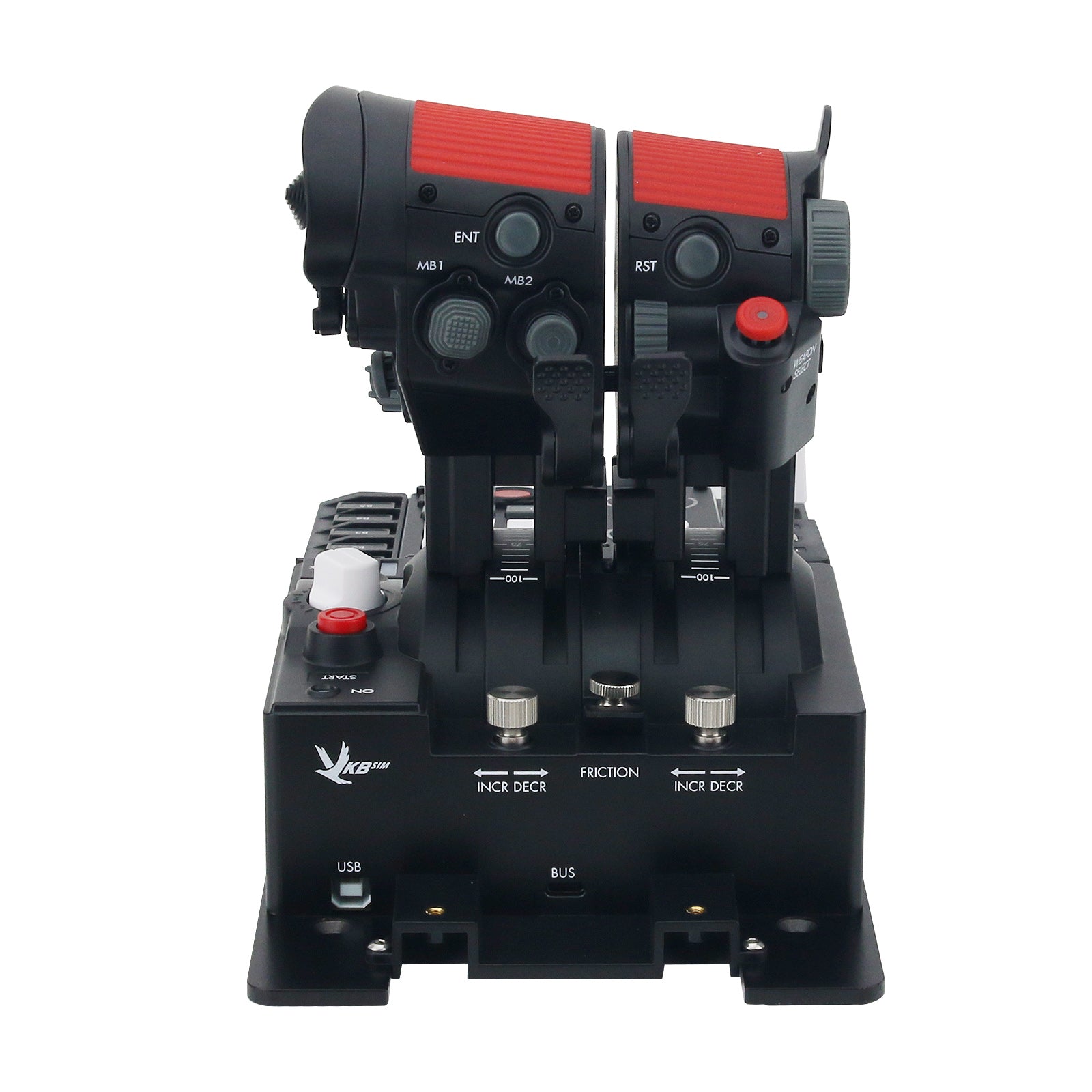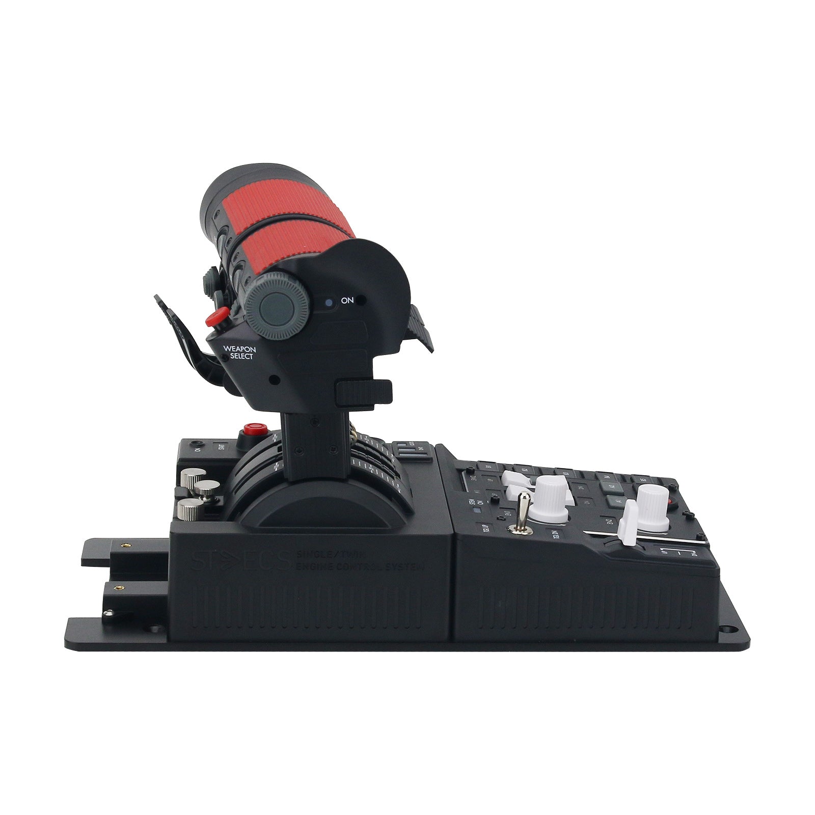 Based on a solid steel platform, the STECS Standard can be used as a desktop stand-alone device, or mounted to a sim rig or chair mount. Includes MFH (Multifunctional Holder) compatible fixture to connect frontal extension modules.