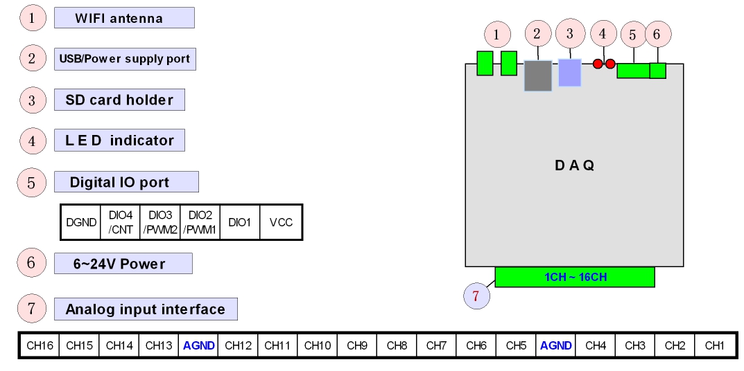 VKINGING VK7015W Wifi Data Acquisition Card DAQ Card Supports 24Bit 16CH 32K Synchronous Acquisition