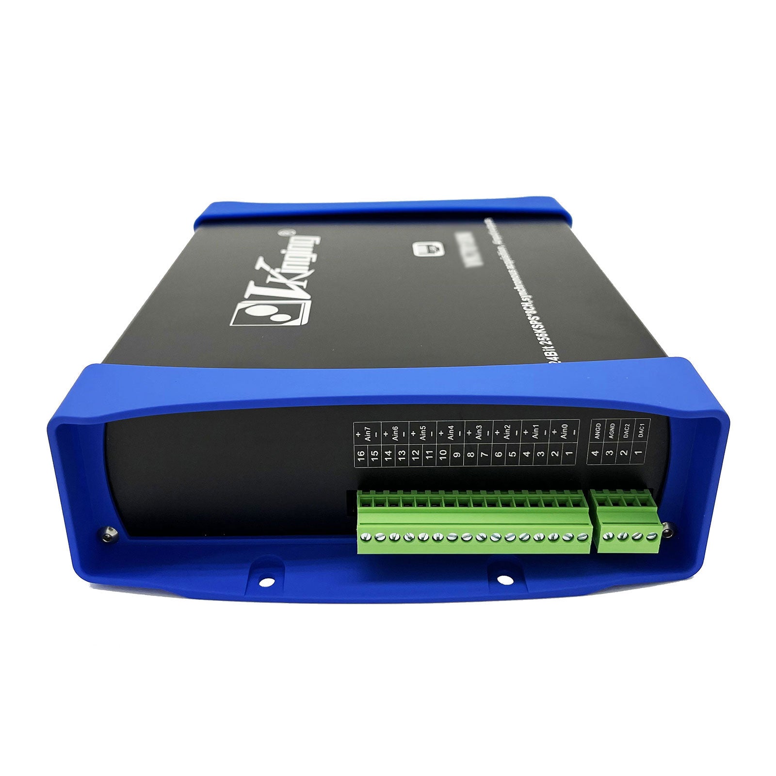 It is an Ethernet/USB high-speed data acquisition card with 8-channel true differential input, 24-bit resolution, single channel maximum sampling rate of 256Ksps, 8-channel synchronization, a total of 2.048Msps, precision pre gain amplification, Gigabit Ethernet transmission unit, and integrated IEPE/ICP hardware support features. This product uses multiple high-precision 24-bit ADC units and a front-end differential amplifier module, making it suitable for various occasions of precision high-speed acquisition. It also boasts high speed, high resolution, high accuracy, ultra-low noise, high rejection ratio, wide measurement range, and low temperature drift.