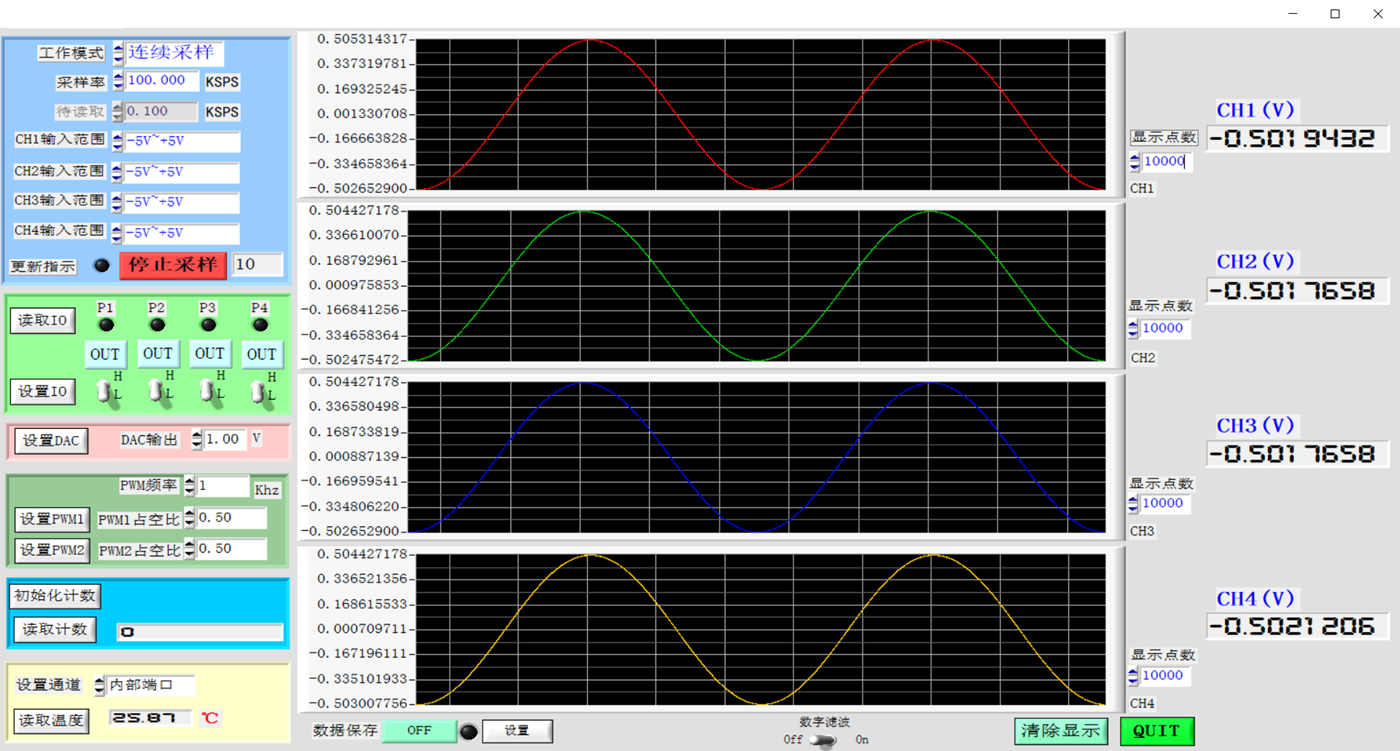 The VK701H+ USB data acquisition card can work in common operating systems such as WIN11/Win10/WIN7 and LINUX, and provides a dynamic link library called by common programming languages such as Python, VB, VC, C#, C++Builder, VB, Delphi, Labview/Labwindows, and Matlab. The programming function interface is simple and easy to use, and it is easy to write applications. It provides routines such as Python, VB, VC, C#, C++Builder, VB, Delphi, Labview/Labwindows, and Matlab.