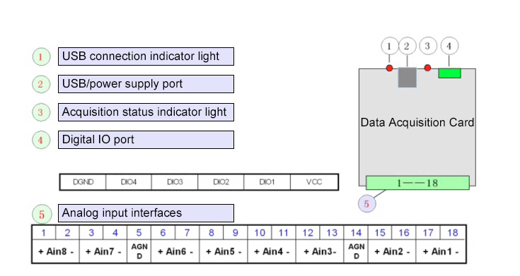 VK702H is a 24-bit high-speed USB data acquisition card. The acquisition card features true differential input, 8-channel simultaneous acquisition, sampling accuracy up to 24 bits, 800kps maximum and 500X precision pre-gain. Using multiple high-precision 24-bit ADC units and pre-differential amplification modules, the VK702H boasts high speed, high resolution, high accuracy, ultra-low noise, high common-mode rejection ratio, wide measurement range and low temperature drift. Thus, it is suitable for a variety of applications with precision and high rate acquisition.