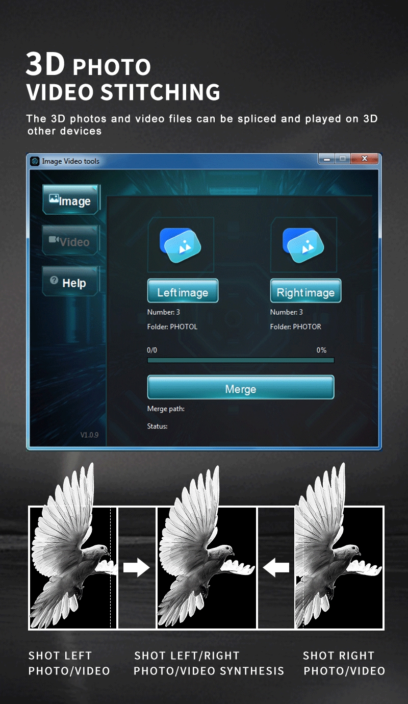 - Watch 3DVR effect, can shoot 3D photos and video files.