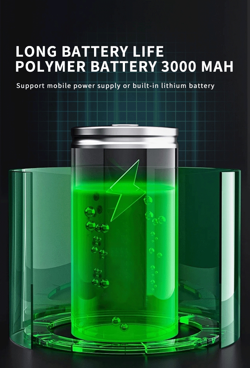 - Built-in 3000mAh Li-ion battery, rechargeable.
