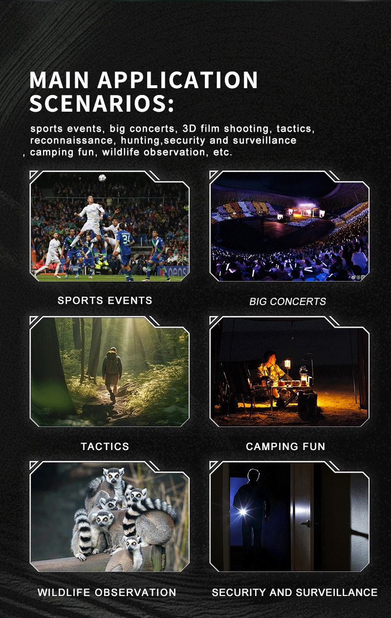 - 100m~150m all-black observation distance, 1.5m~infinite low-light observation and shooting distance.