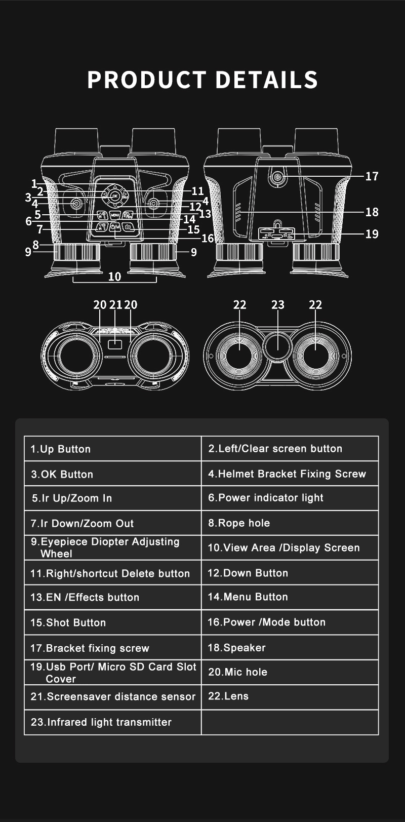 - High-power infrared light, 7 levels of brightness adjustment.