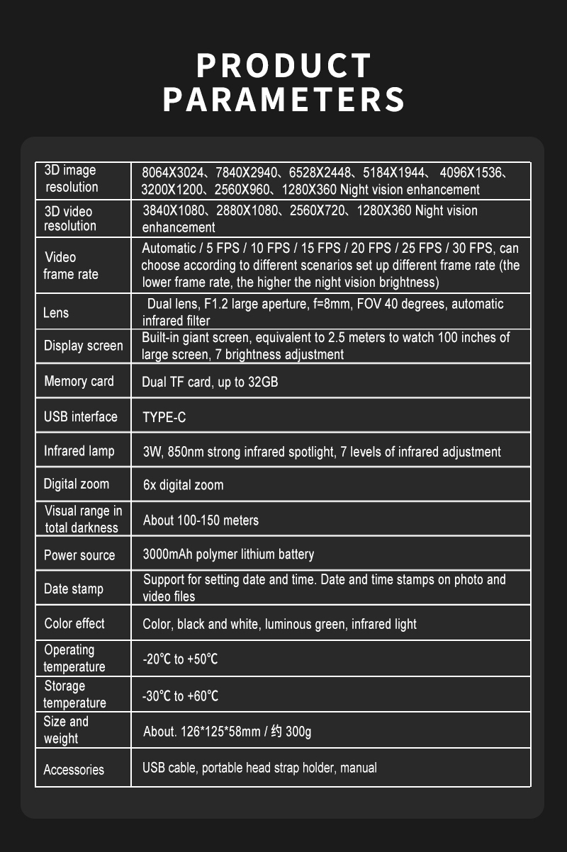 VRNV300 3DVR 4K UHD Professional Head-mounted Night Vision Telescope 6X Digital Zooming IR Light IP54 Waterproof Binocular