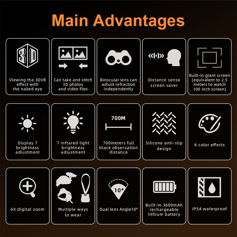 VRNV303 Naked Eye 3D VR Head-mounted Binocular Night Vision Device F1.3 6X Digital Zoom Binocular Support Manual Focusing
