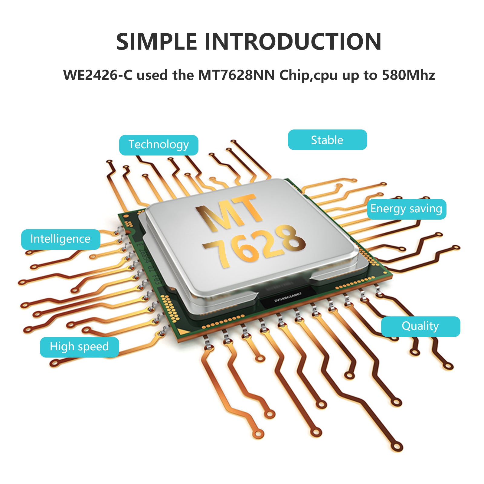 - MT7628NN solution, the main frequency is up to 580MHZ, featuring strong and stable performance