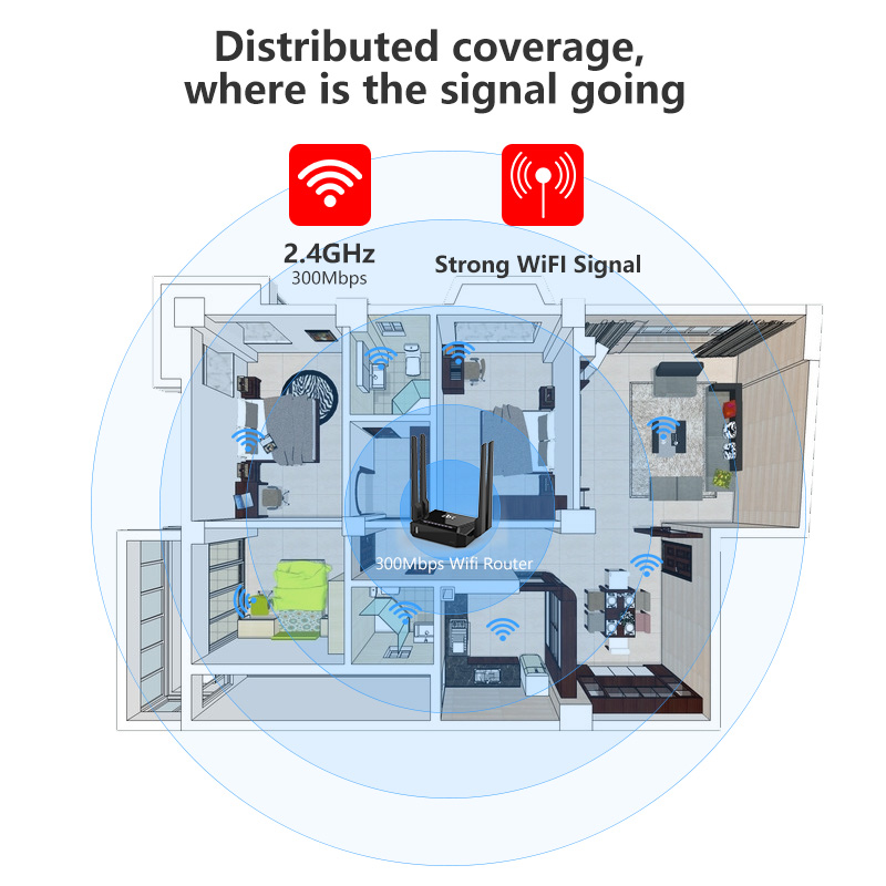 WE3826 2.4GHz 300Mbps Wireless Wifi Router 4 LAN Ports MT7620N Chip 8M+64M for Family Use
