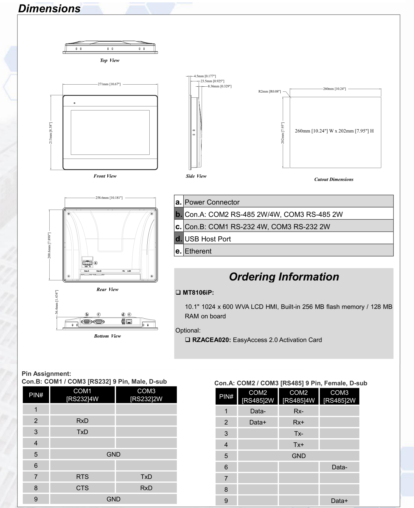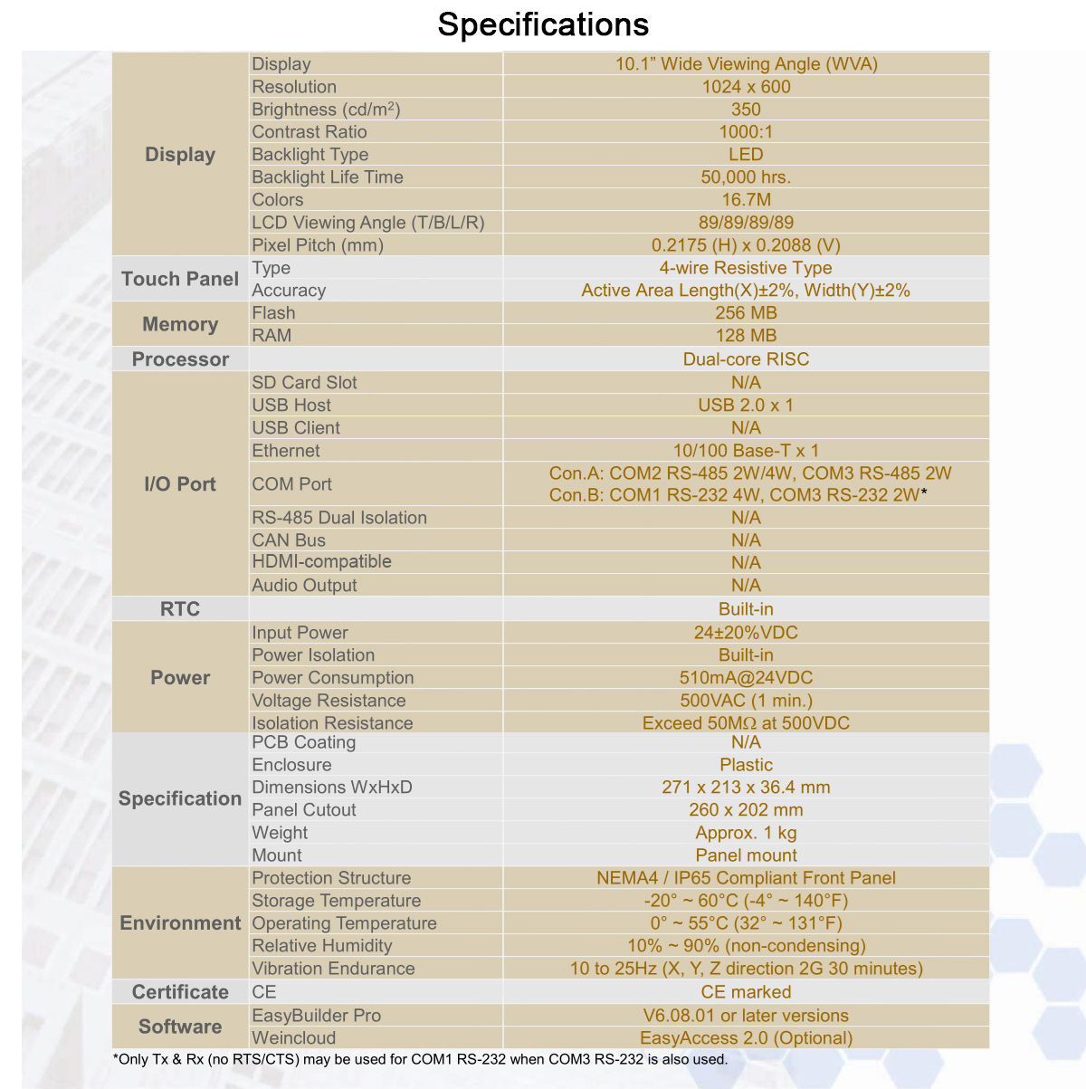 Weinview MT8106IP HMI Touch Screen w/ 10.1" 1024 x 600 Wide Viewing Angle LCD & Ethernet Port