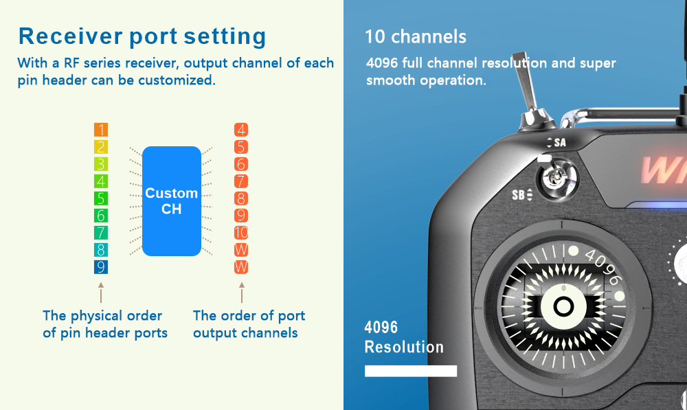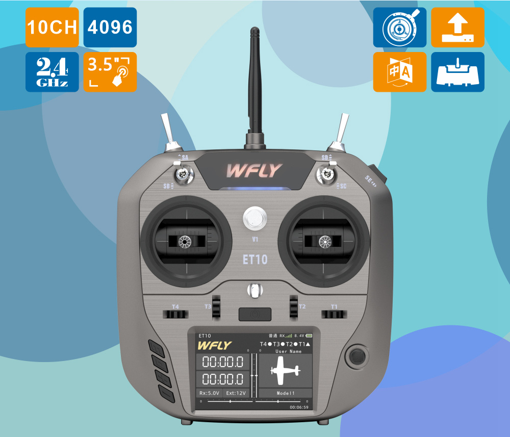WFLY ET10 2.4GHz RC Controller Remote Controller with Right Hand Throttle for FPV Fixed Wing Drones