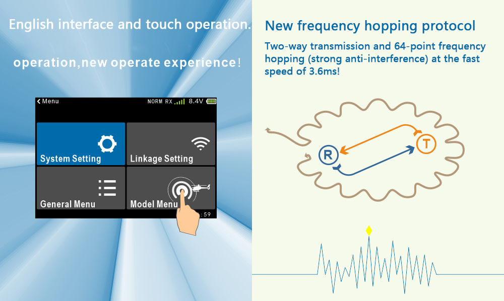 - Frequency hopping: New FHSS Frequency Hopping (64 points and 3.6ms)