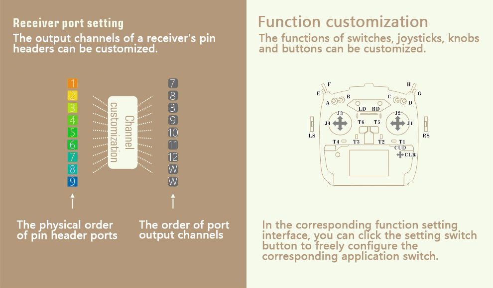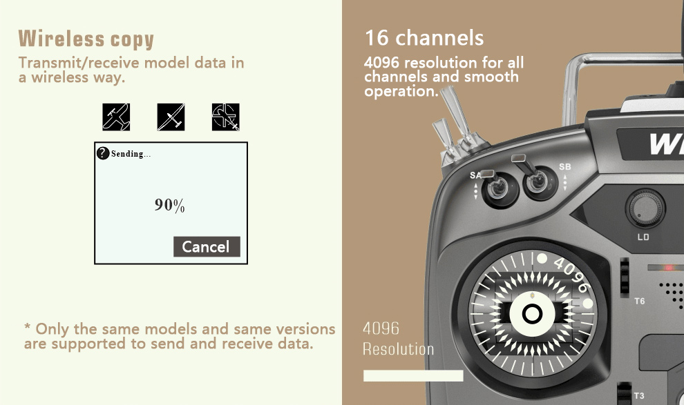 WFLY ET16S 16CH RC Controller Remote Controller with Right Hand Throttle for Fixed Wing FPV Drones