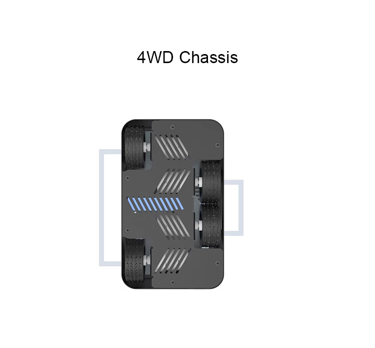 - Because the three-point surface is formed, the four-wheel drive chassis will have poor performance if it does not add a suspension system.  However, with special-shaped installation, the installation position of the two wheels on one side is very close, similar to one wheel, and the problem of uneven ground wheels hanging can be solved without suspension. Through innovation, we have been able to meet our customers' demands for high quality and low price, made the motors installed displaced and reduced the size of the product.