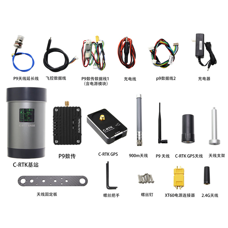 The new RTK-BASE differential high-precision GPS base station system has built-in multi-star single-frequency RTK receiver module, P9 over-the-horizon data transmission module and WIFI communication module. Its high capacity ensures 12 hours of continuous operation, and fits for LINUX system. Two working modes enable it to be used in drones, unmanned vehicles and the like.