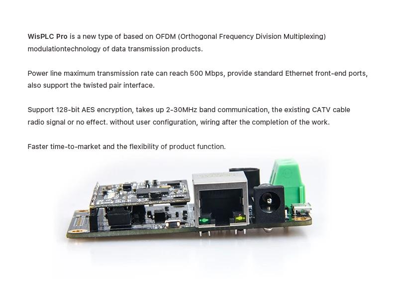 WisPLC Pro500M Opensource Development Board 500Mbps PLC Wideband Power Line Signal Carrier Module with Ethernet Port