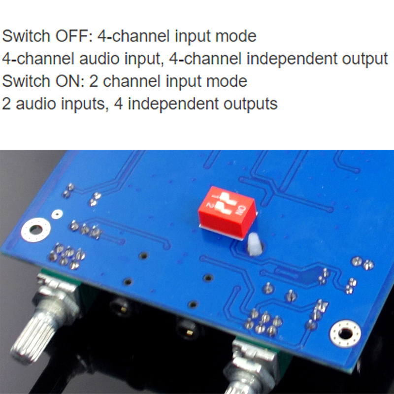 - Switch OFF: 4 Channel Input Mode; 4-channel audio input, 4-channel independent output