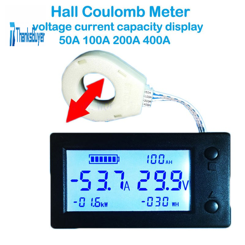 This is our brand new STN LCD Hall Coulomb Meter, Battery Coulomb Meter. The coulometer with hall sensor can be installed very easily. No need to consider the problem of power supply and common ground. Because hall measurement is an isolated measuring way, which will not damage the original line, and is N times safer and more reliable than a general shunt coulomb meter.