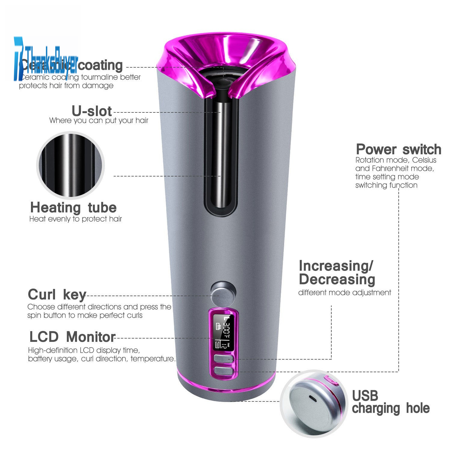 WT-125 Portable Automatic Curling Iron Cordless Curling Wand Rechargeable Hair Curler Not Hurt Hair