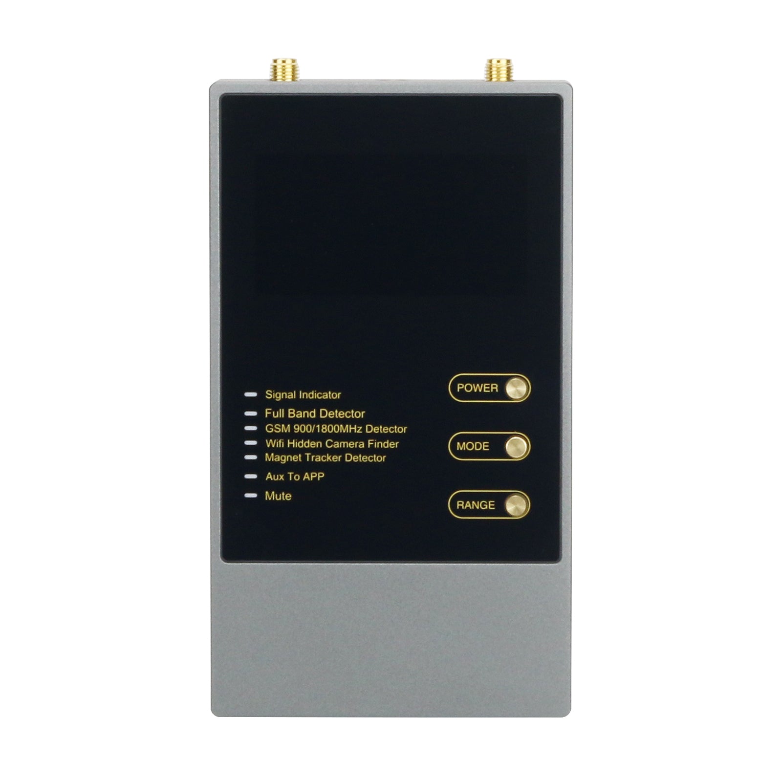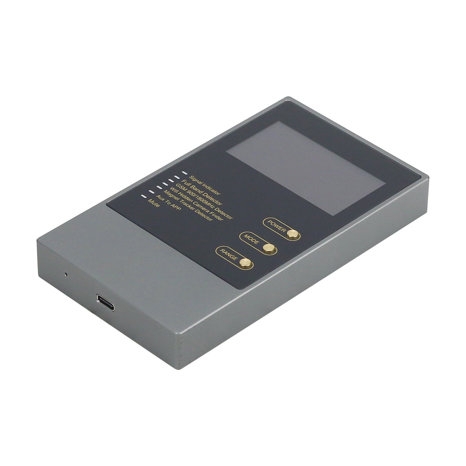 - 6 detection modes. LED display screen has 6 kinds of display frequency, which can display the illegal equipment discovered more intuitively. Support full-band detection, GSM/GPS detection, WIFI hidden detection, strong magnetic detection, APP detection and silent detection