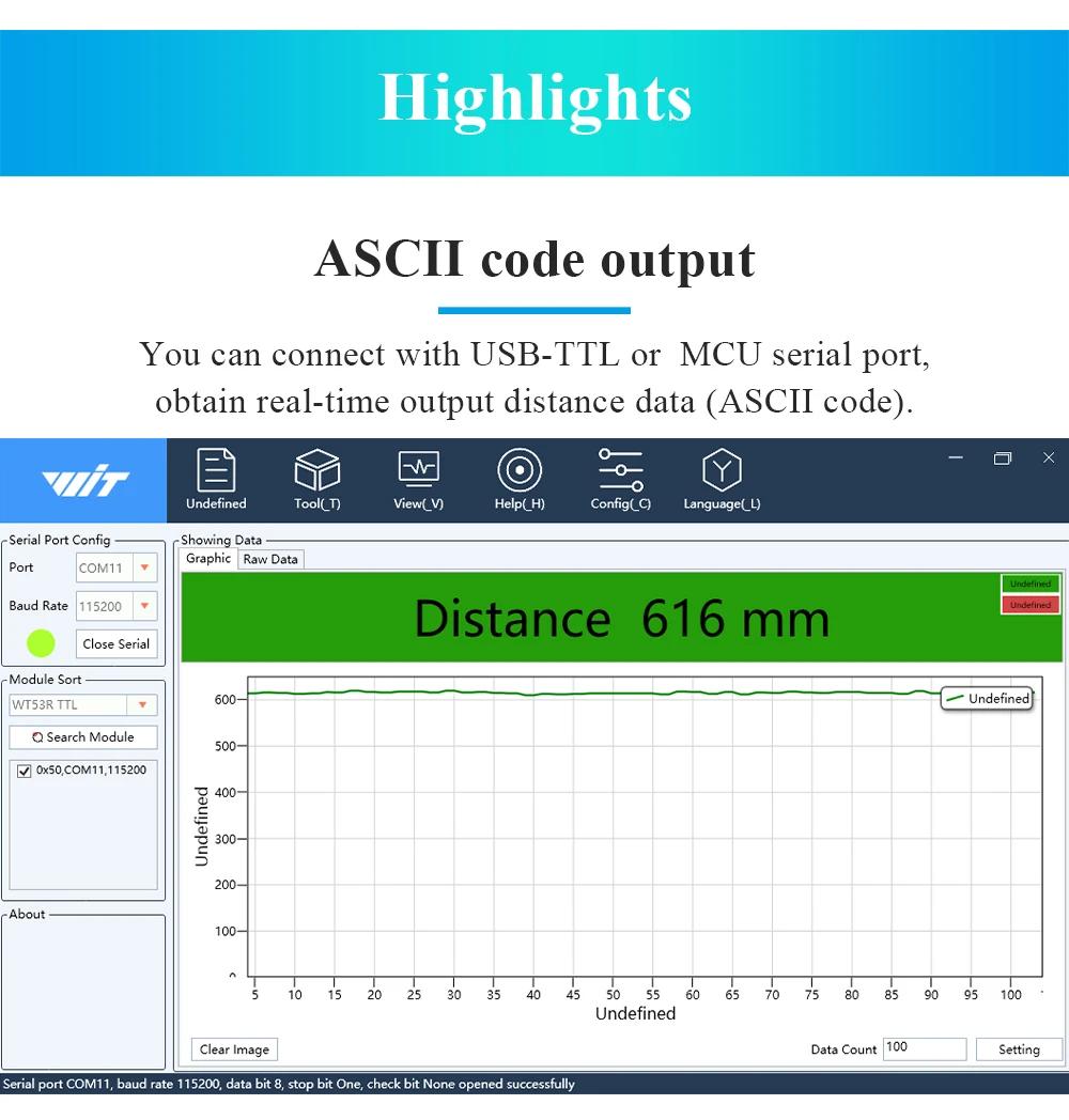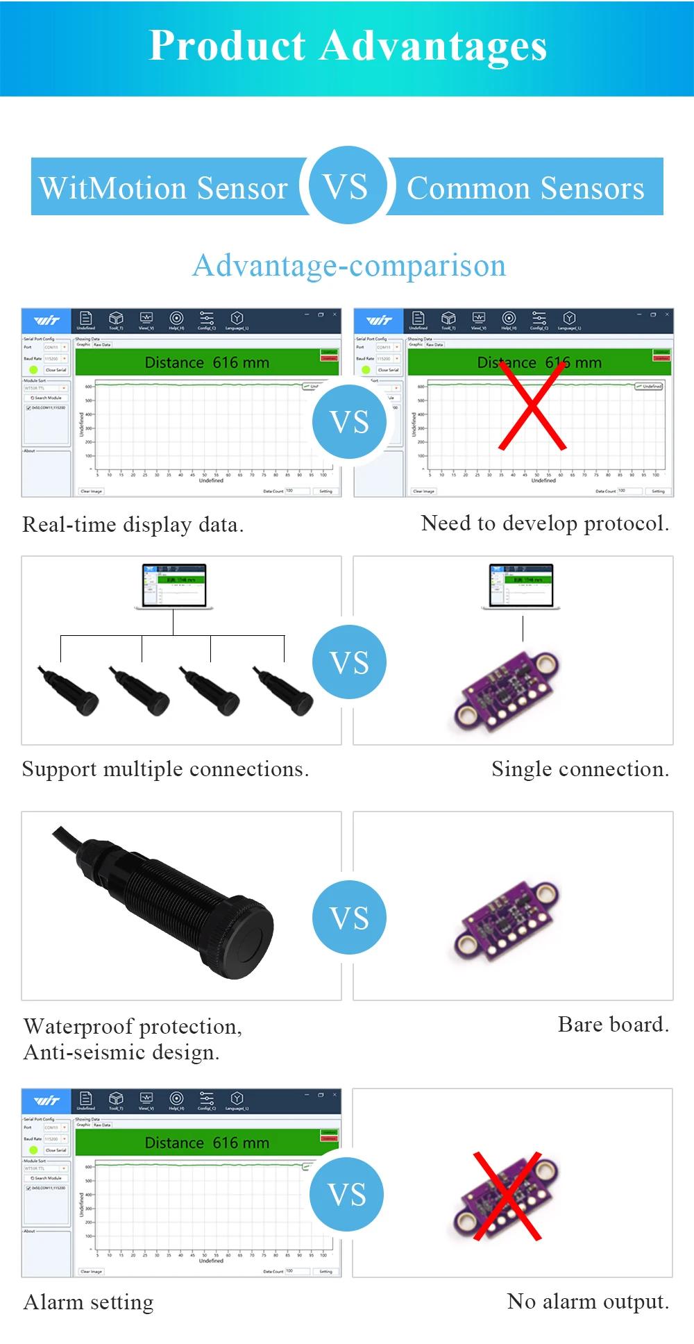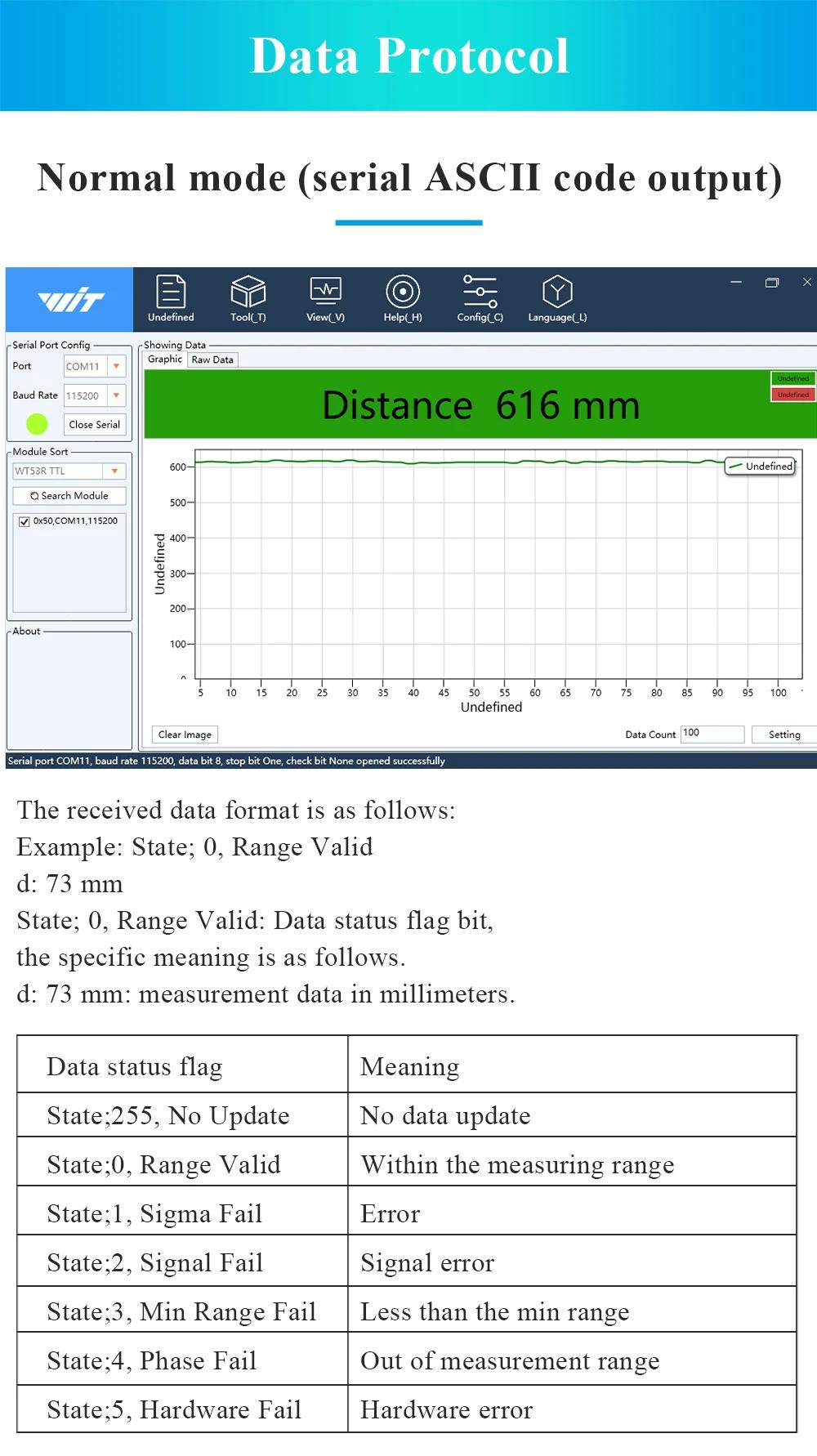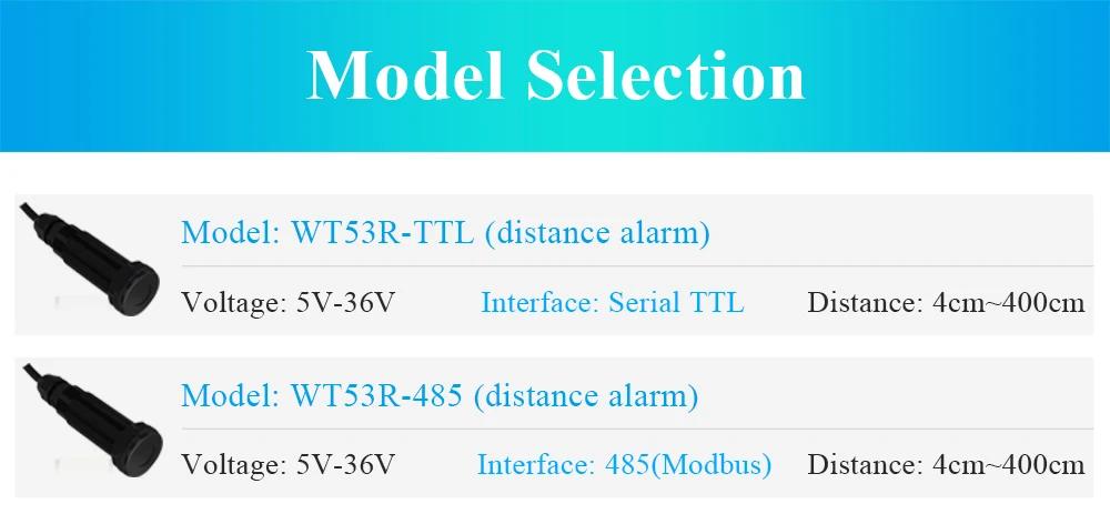 WT53R-TTL 4CM-400CM Distance Alarming Waterproof Time-of-Flight Laser Ranging Sensor Module for Modbus