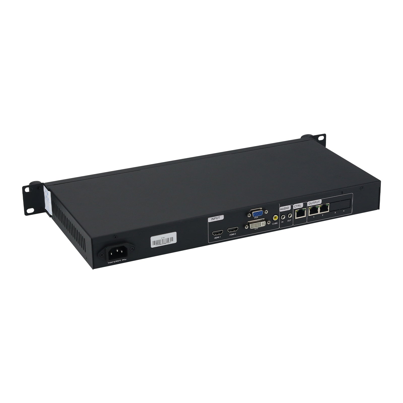 The all-in-one video processor integrates USB flash player, sending card and video processor in one. A single device can carry up to 1.3 million pixels, a maximum bandwidth of 3840 pixels, and a maximum of 1920 pixels.