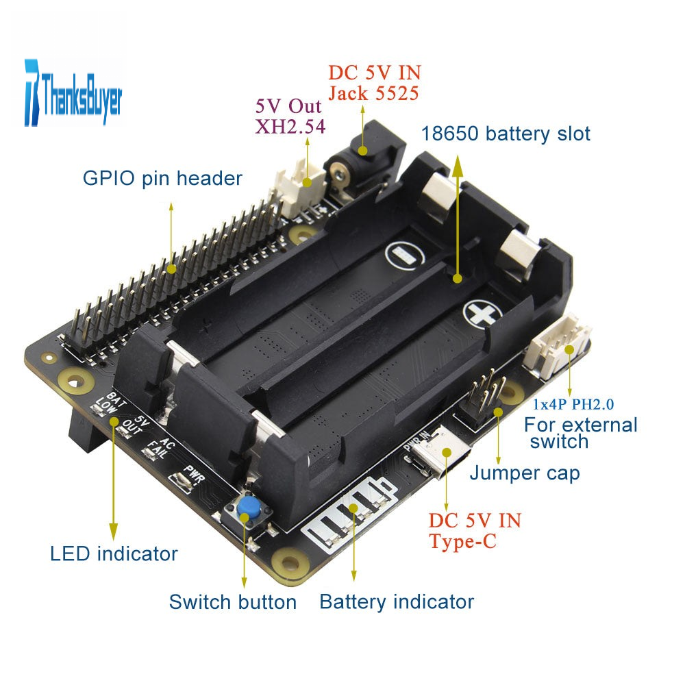 -Advanced system power path management, allowing 3A fast charging and powering the Raspberry Pi at the same time.