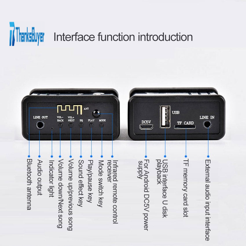 - Premium components: For USB U disk playing. For TF card playing. For AUX audio input. Imported filter. IR remote control receiver. Solid state audio capacitors. Upgraded Bluetooth 5.0 chip. With LINE OUT audio output port.