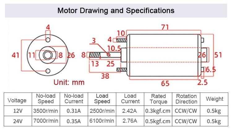 XD-3420 30W Permanent Magnet DC Motor High-Speed Micro Motor (24V 7000r/min) with Threaded Shaft