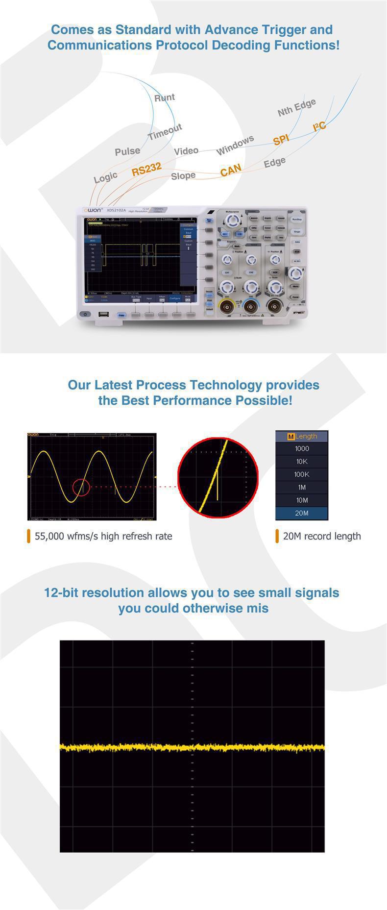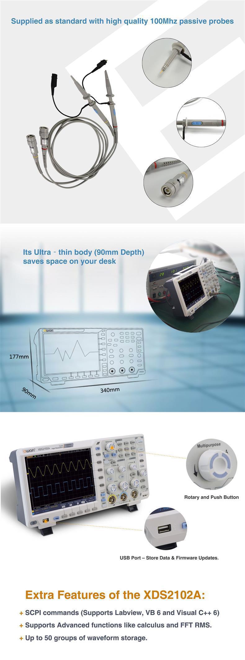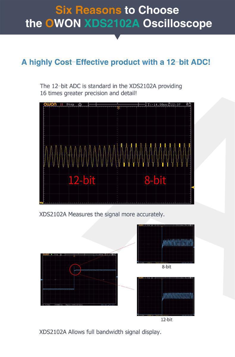 XDS2102A 100MHz 12Bits High Resolution ADC 2-Channel Digital Oscilloscope Support for SCPI and Labview