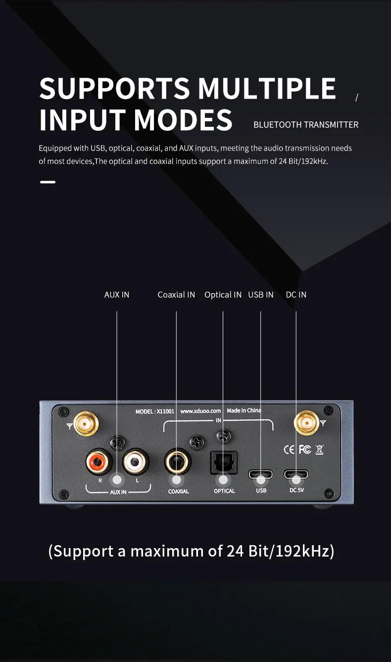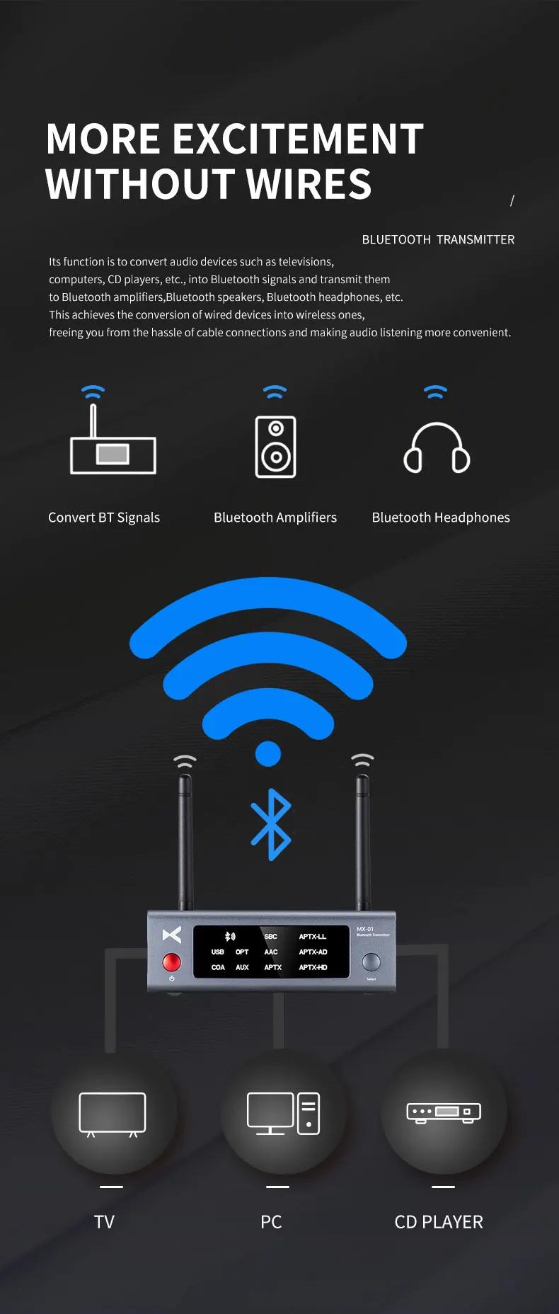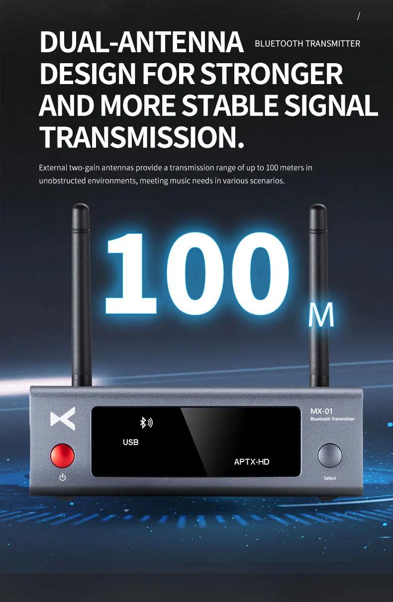 xDuoo MX-01 Wireless Bluetooth5.3 Audio Transmitter USB/Optical/Coaxial/AUX Dual Antenna 100M Transmission