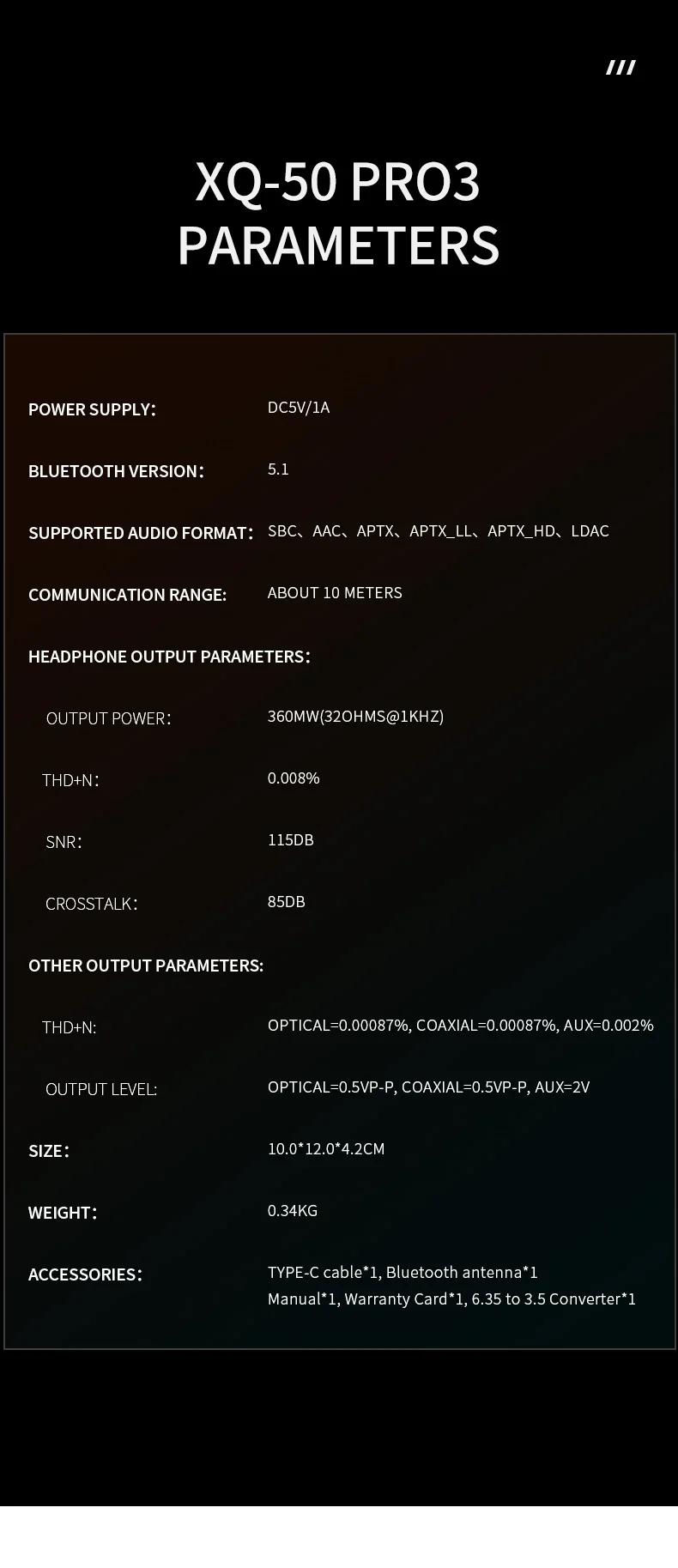 xDuoo XQ-50 Pro3 Bluetooth5.1 Turntable CS43131 DAC Audio Decoder Headphone Amplifier HiFi 360mW Output