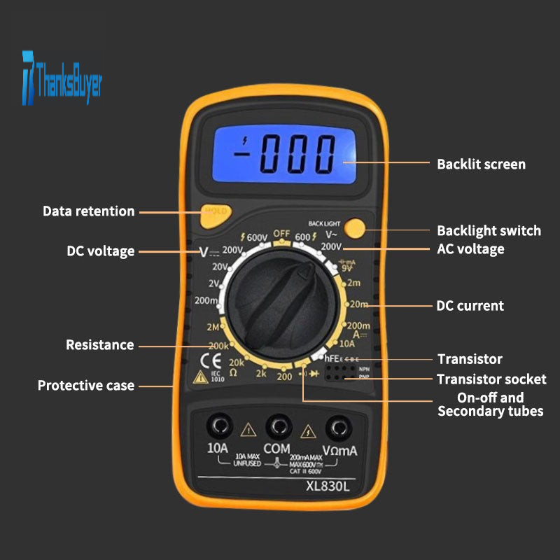 XL830L Handheld Multimeter Digital Multimeter w/ Backlight to Test Voltage Current Resistance Diode