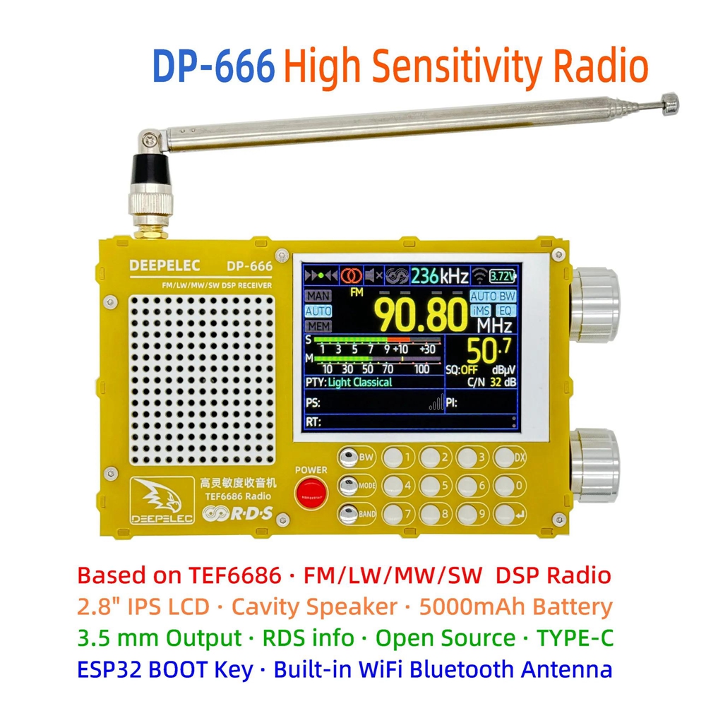 Yellow DP-666 TEF6686 FM/LW/MW/SW Full Band Radio High Sensitivity DSP Receiver Support Secondary Development
