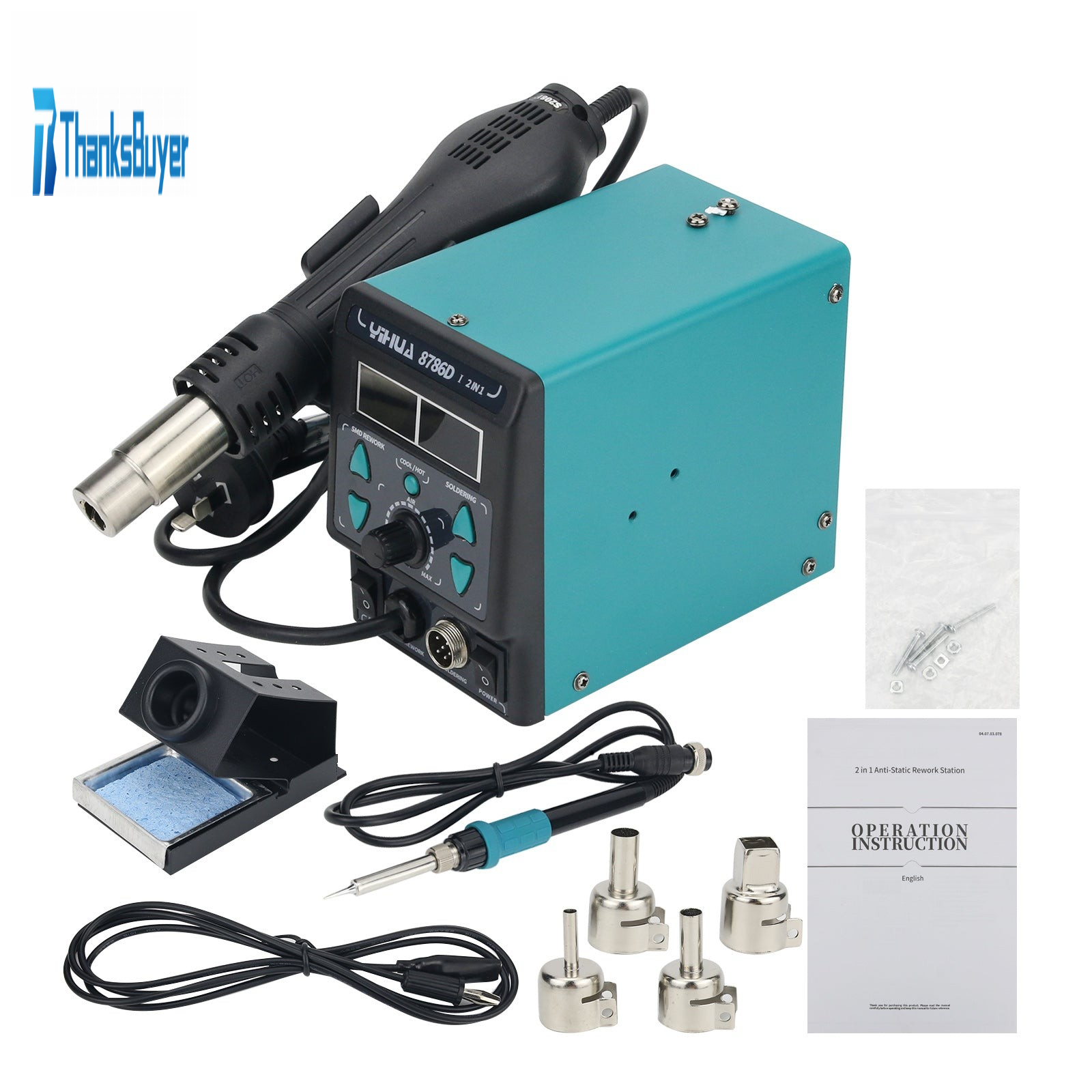 - 2-In-1: Hot air gun soldering station