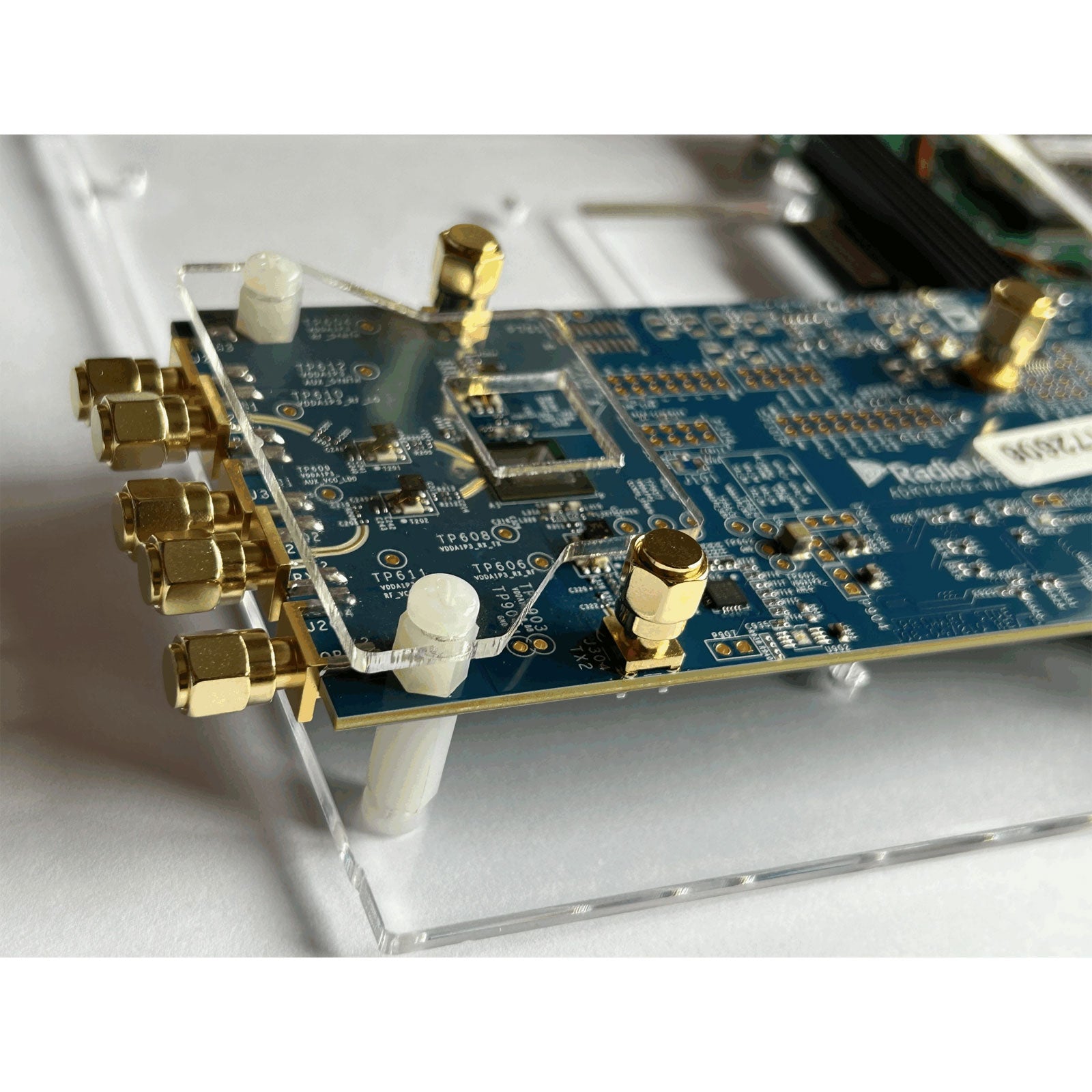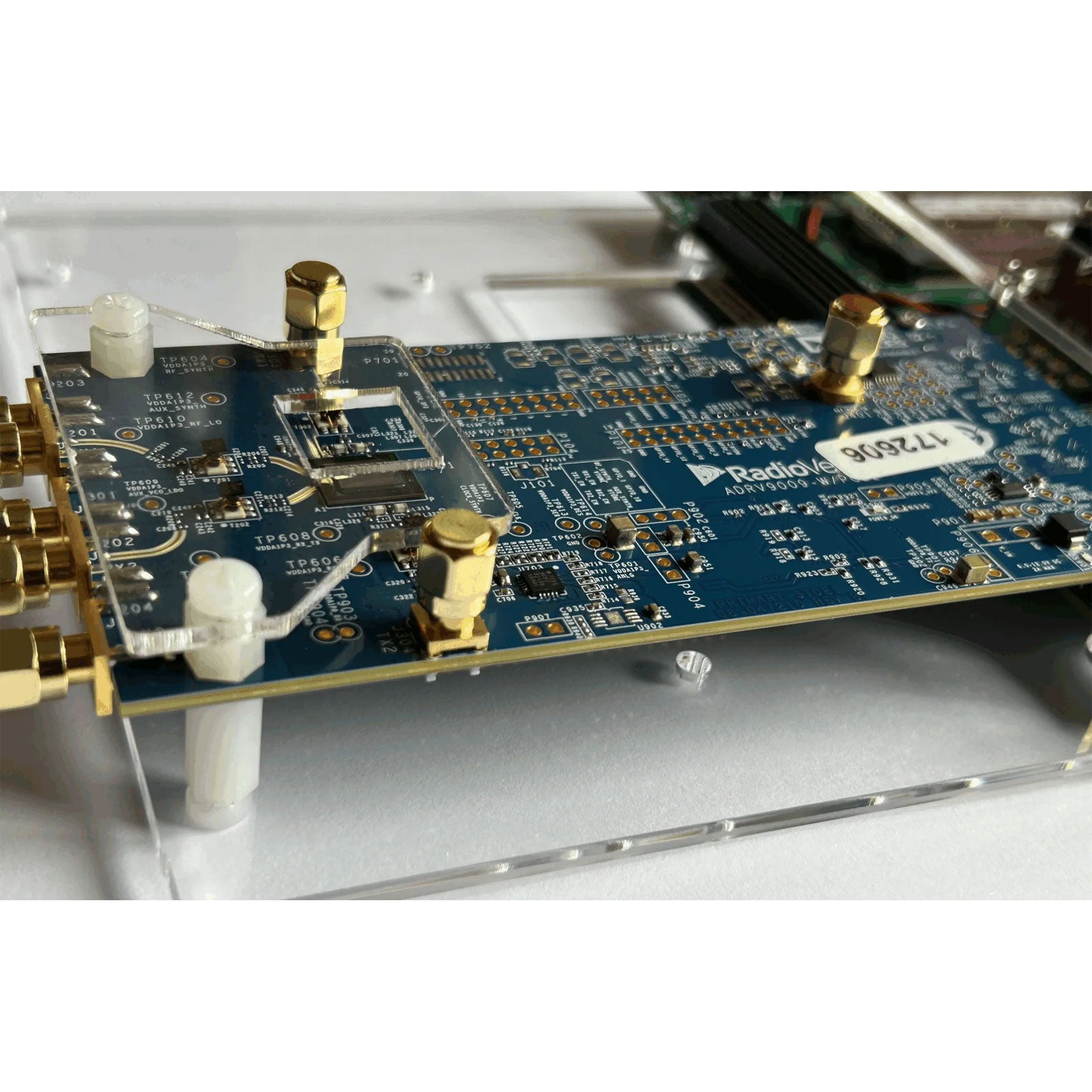 The board can be connected to RF daughter board ADRV9009. Since the board is fully compatible, you can use the official code (for ADI) for experimental development. We will provide some information and technical support.
