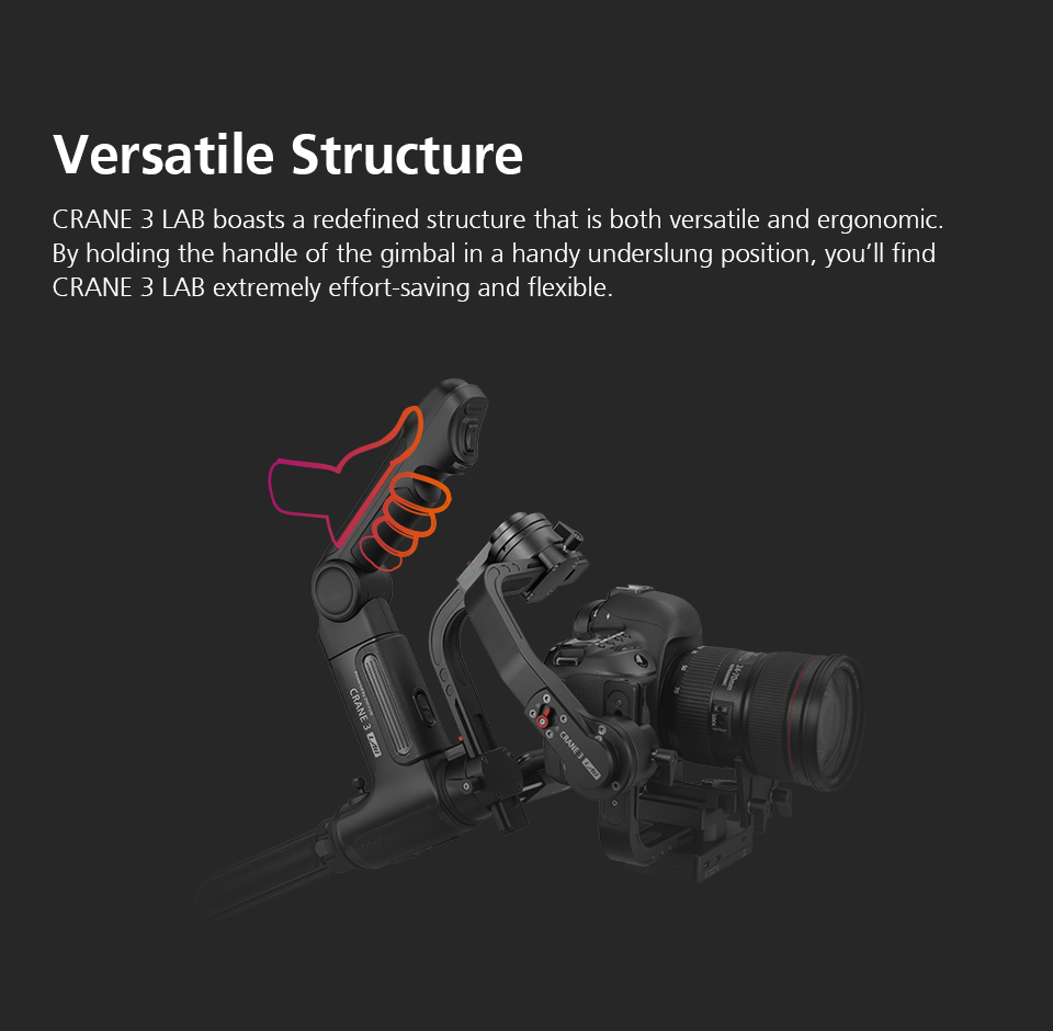 2. Versatile Structure: CRANE 3 LAB boasts a versatile and ergonomic structure that even revolutionizes the entire appearance. It achieves extremely effort-saving and flexible.