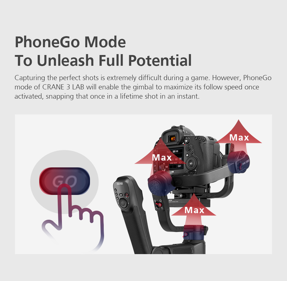 6. Motion Sensor Control: Your phone can also be used as a motion sensor remote control. CRANE 3 LAB allows a direct connection to your phone and turns it into a motion sensor controller.