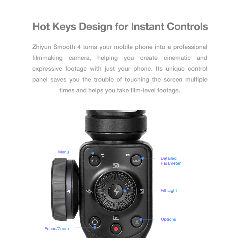 Zhiyun Smooth 4 is designed for mobile phone filmmakers, turning your mobile phone into a professional filmmaking camera, helping you make stable and smooth footage just with your phone.