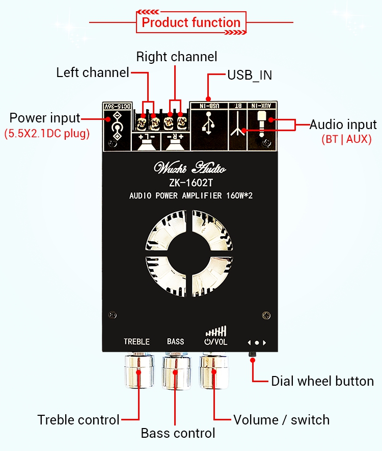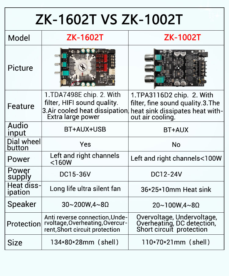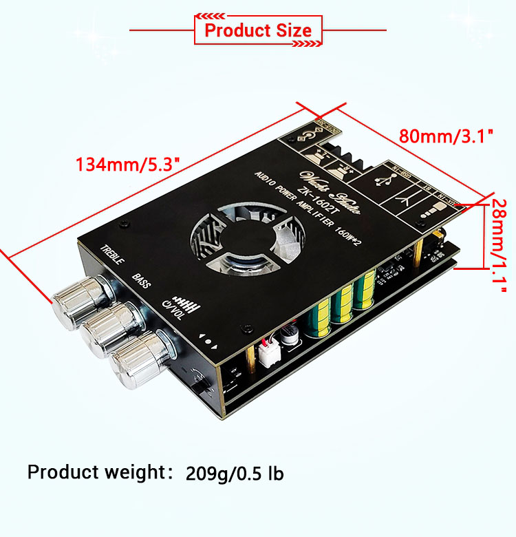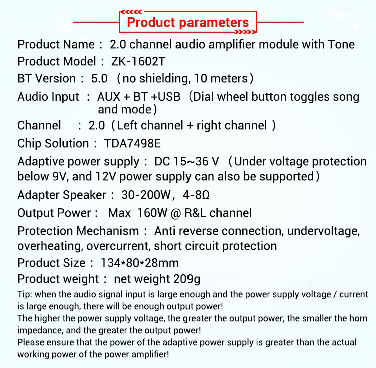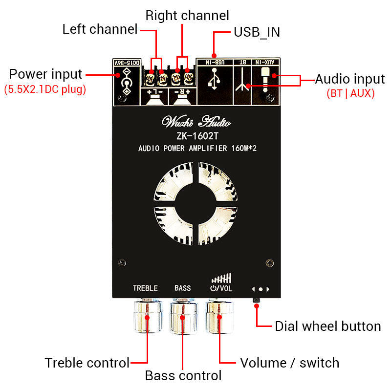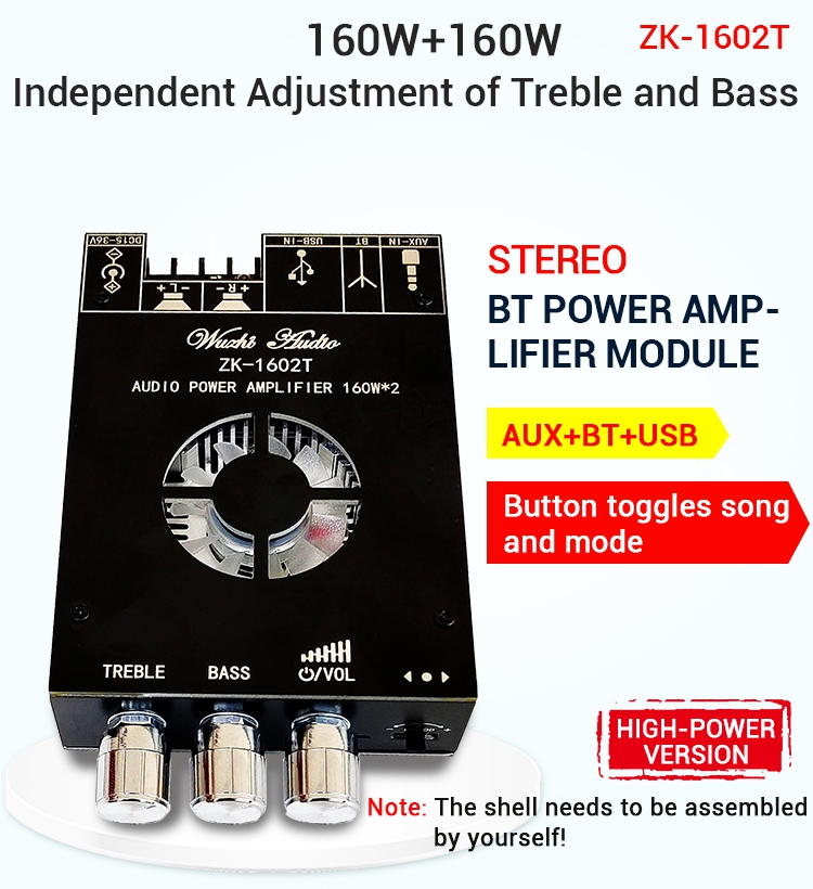 ZK-1602T Audio Power Amplifier Board 160W*2 Bluetooth 5.0 Power Amp Board Module TDA7498E Amplifier