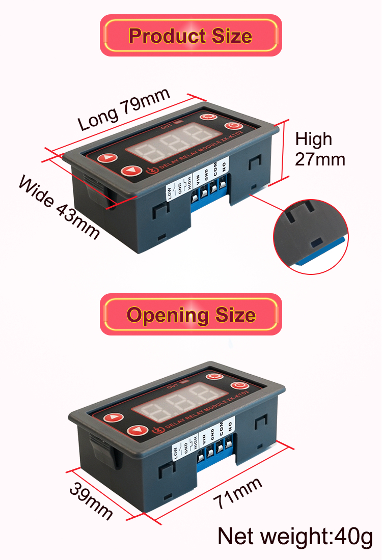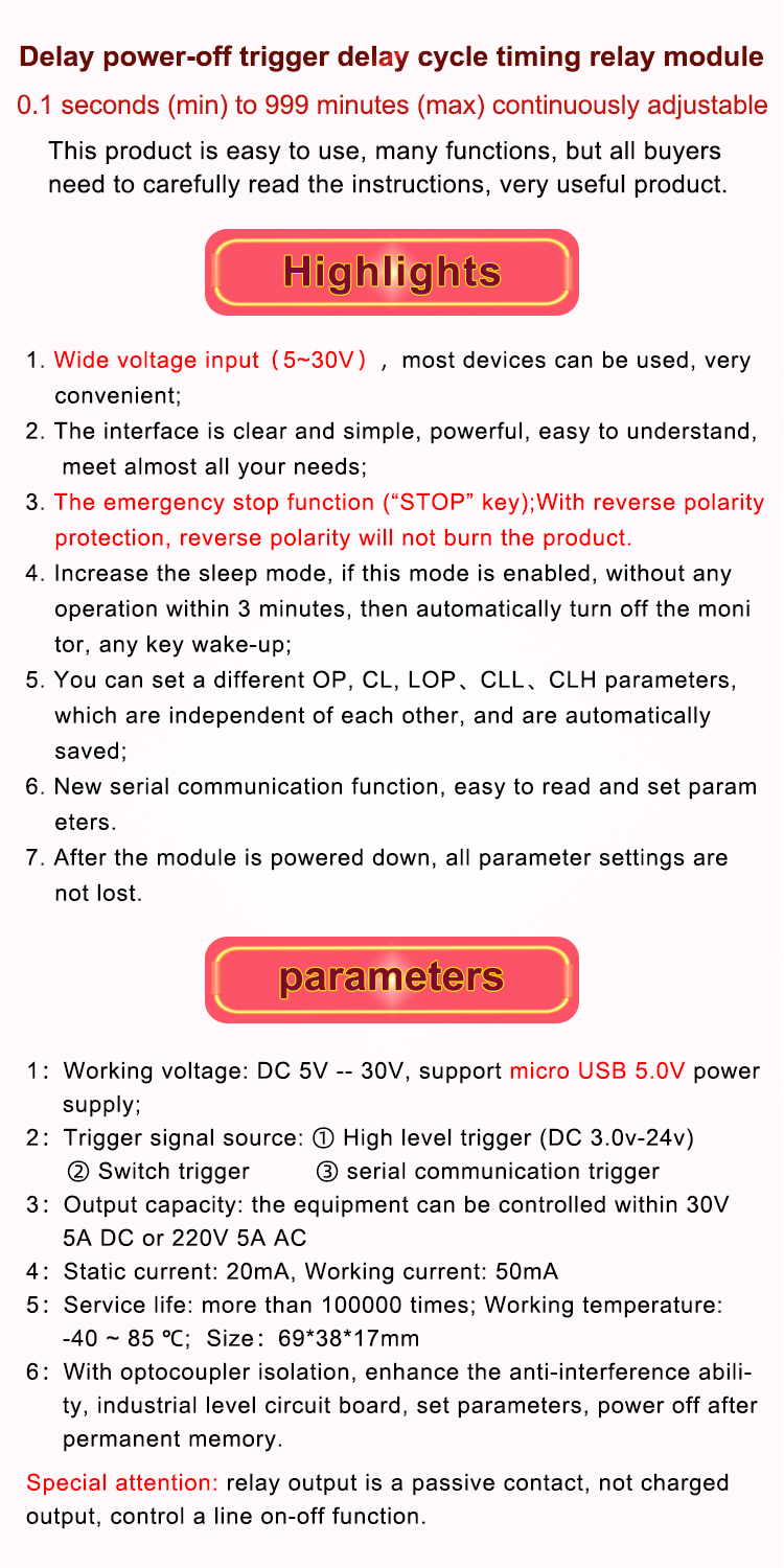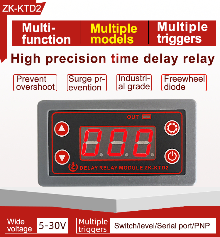 ZK-KTD2 Time Delay Relay Module 5V 12V 24V Trigger Cycle Timing Industrial Anti-Overshoot w/ Shell