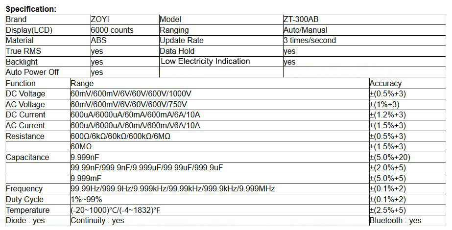 ZOYI ZT-300AB Autoranging Digital Multimeter Tester Supporting Bluetooth 600V CAT III & 1000V CAT II